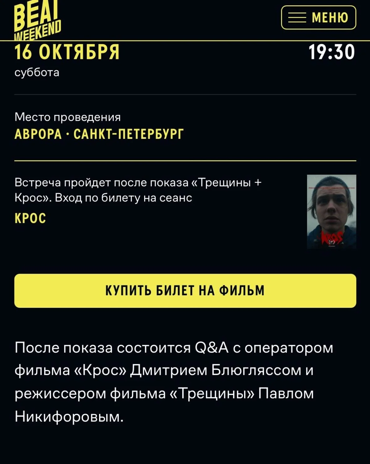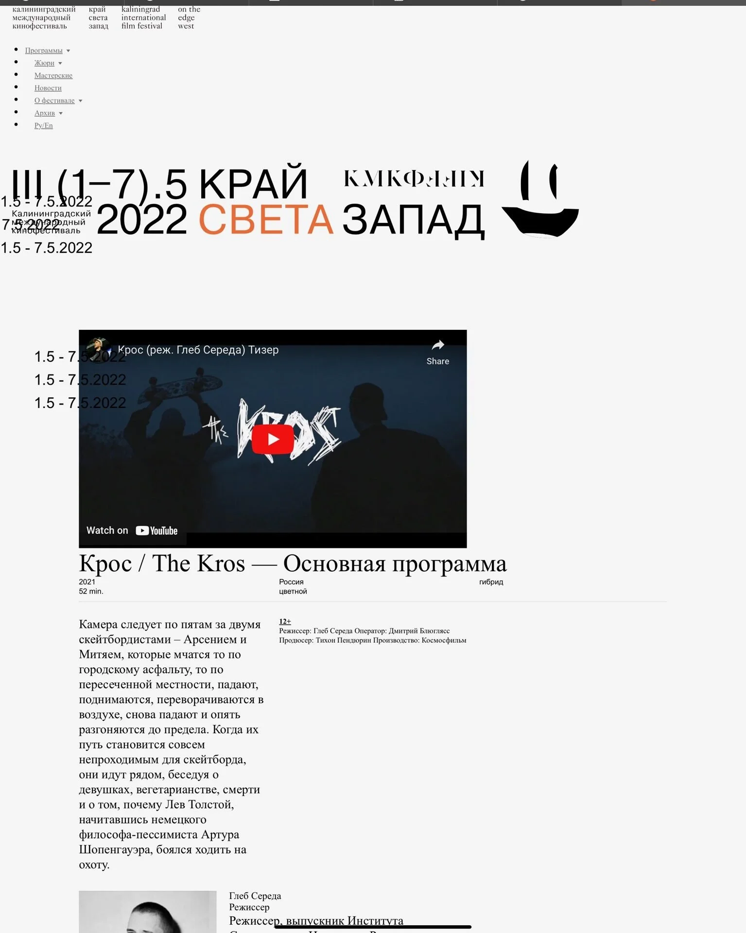 The first season of the Dom Radio Cinema Laboratory is closing with the St Petersburg premiere of The Kros by Gleb Sereda.